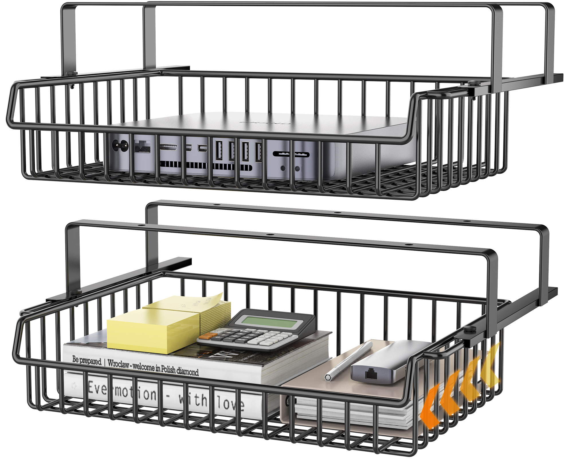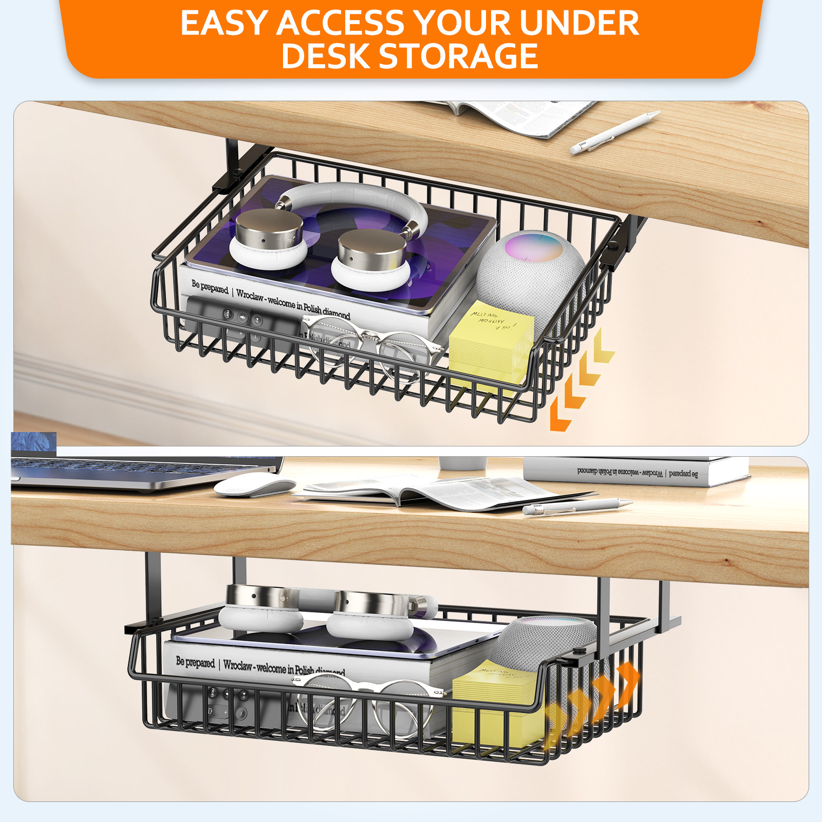 【Under Desk Drawer】Under desk shelf storage provides extra storage space for your desk, organizes power strips and cable management under desk, frees up more office space. The metal drawer storage is versatile for use under desks, TV cabinets, kitchen cabinets, or in closets. Perfect for appliance cables, remotes, electronic
